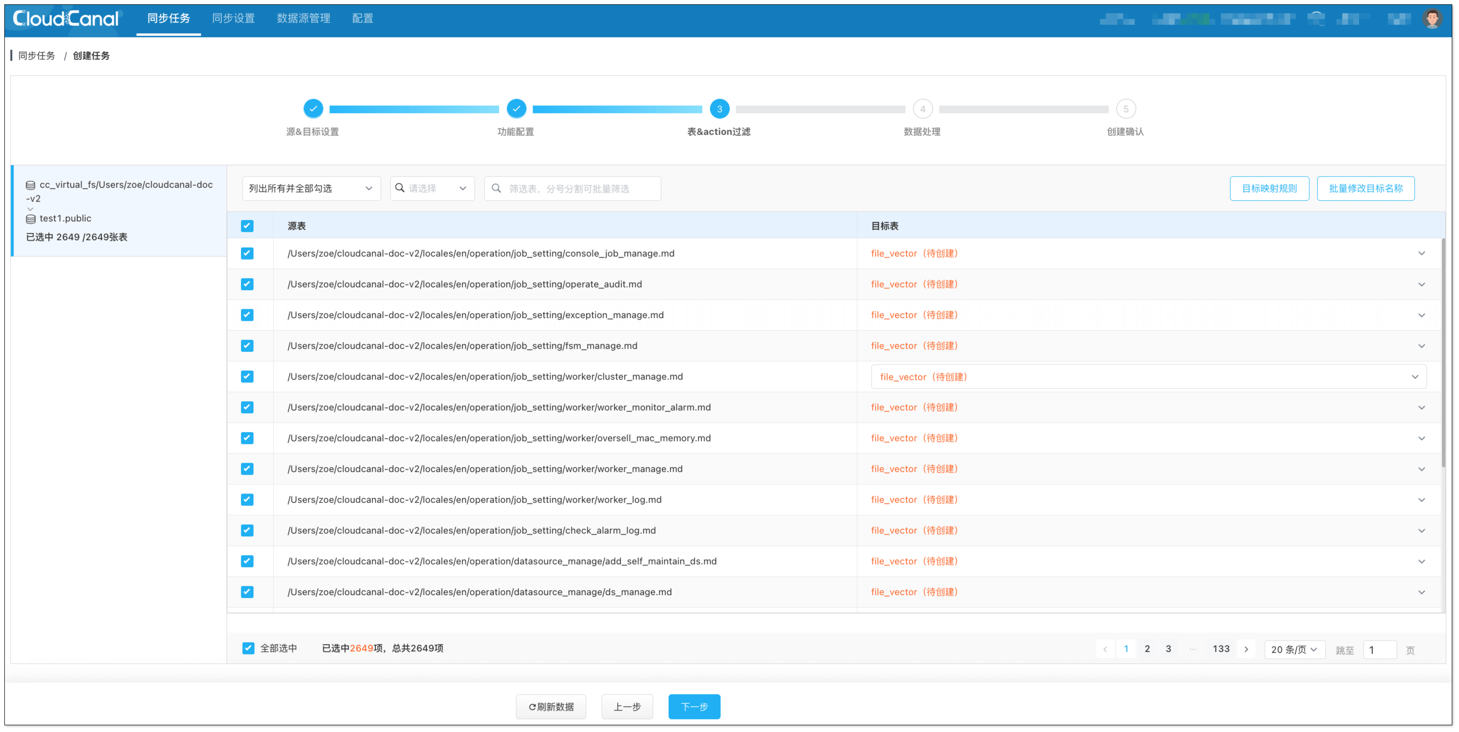 - 点击 批量修改目标名称 > 统一表名 > 填写表名(如 file_vector),并确认,方便将不同文件向量化并写入同一个表。