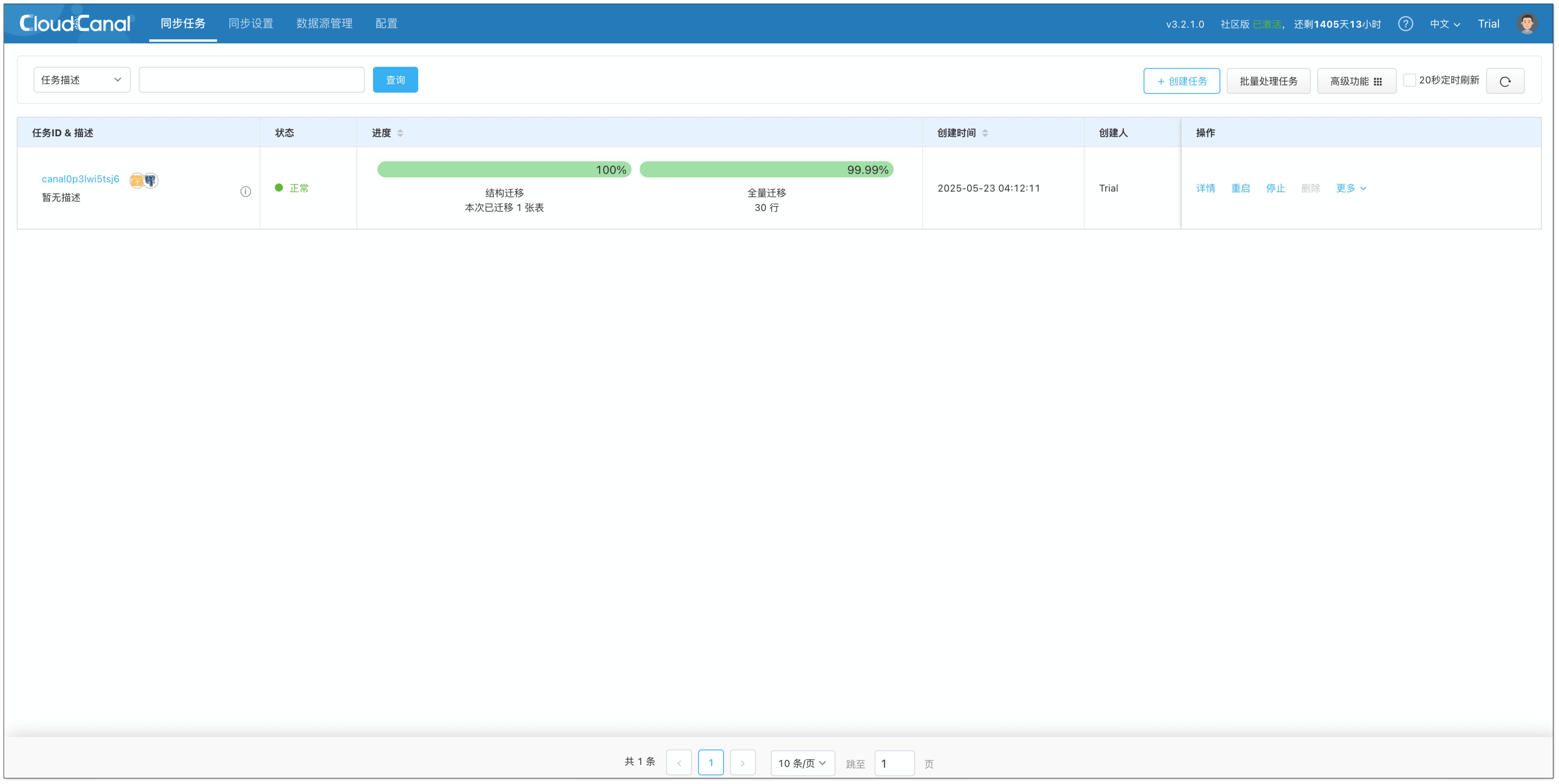 - 在 创建确认 页面,点击 创建任务,开始运行。