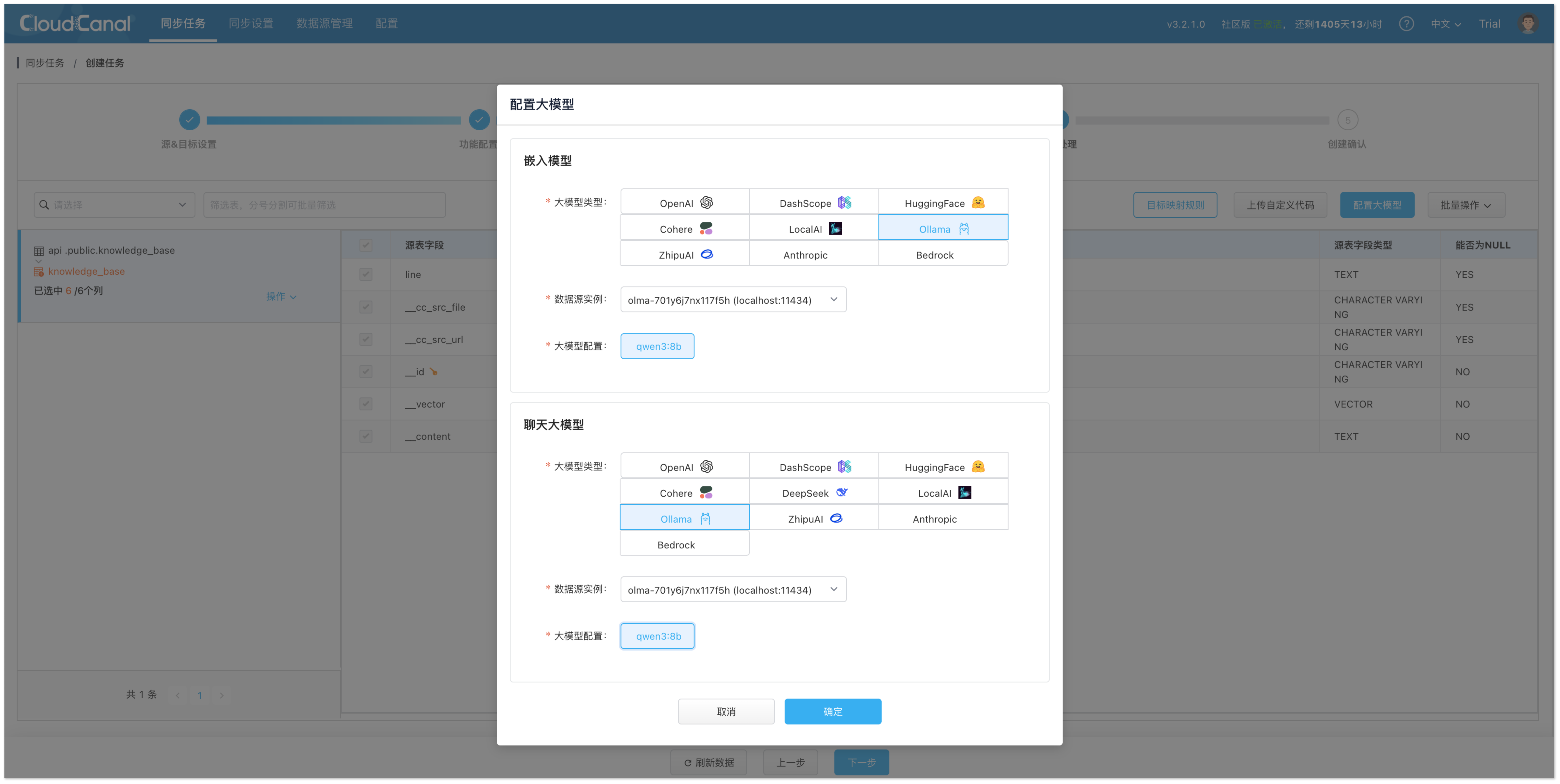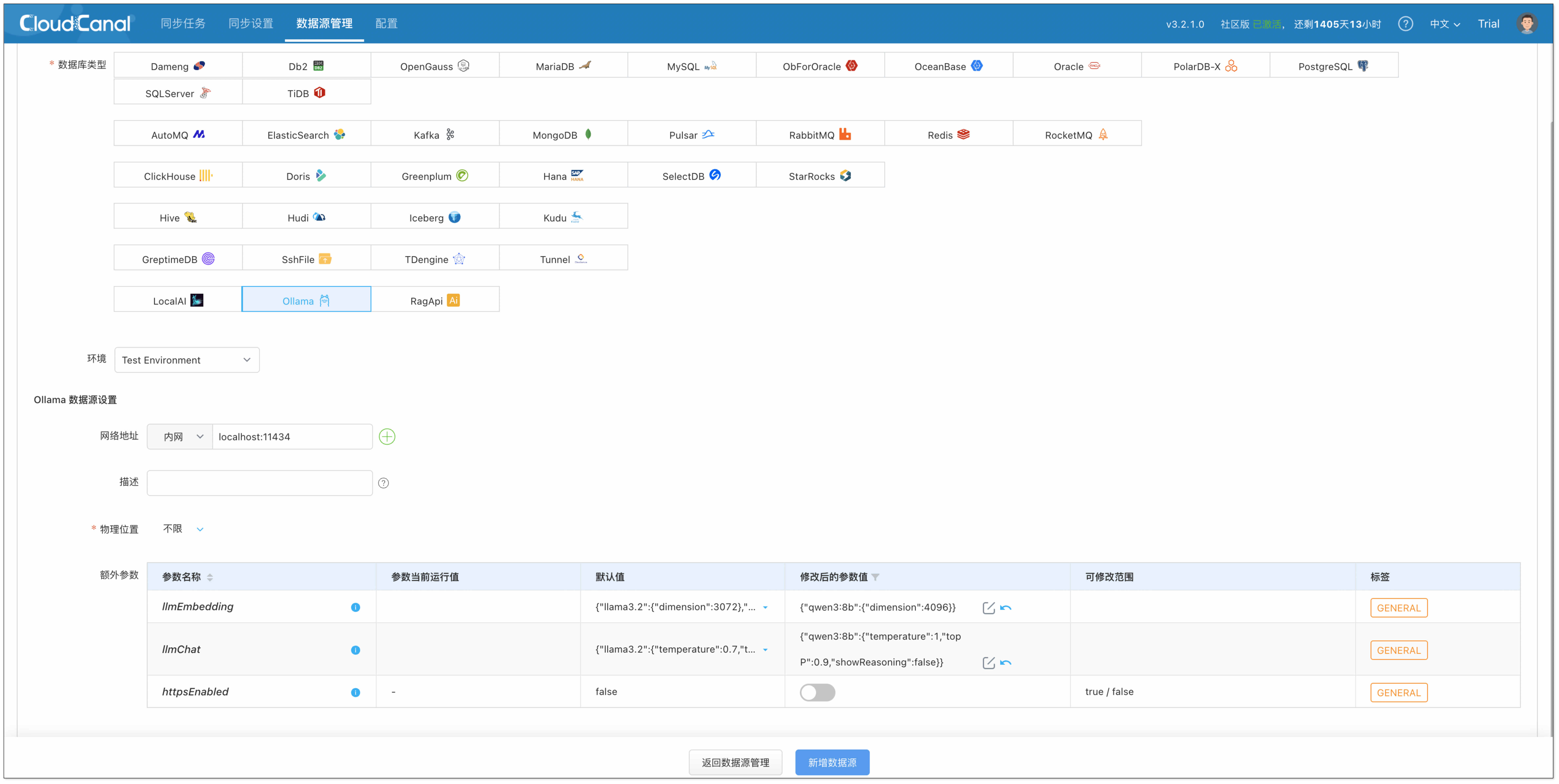 CloudCanal 支持通过 Ollama 提供完整的向量生成与推理能力,适用于完全私有化的 RAG 场景。