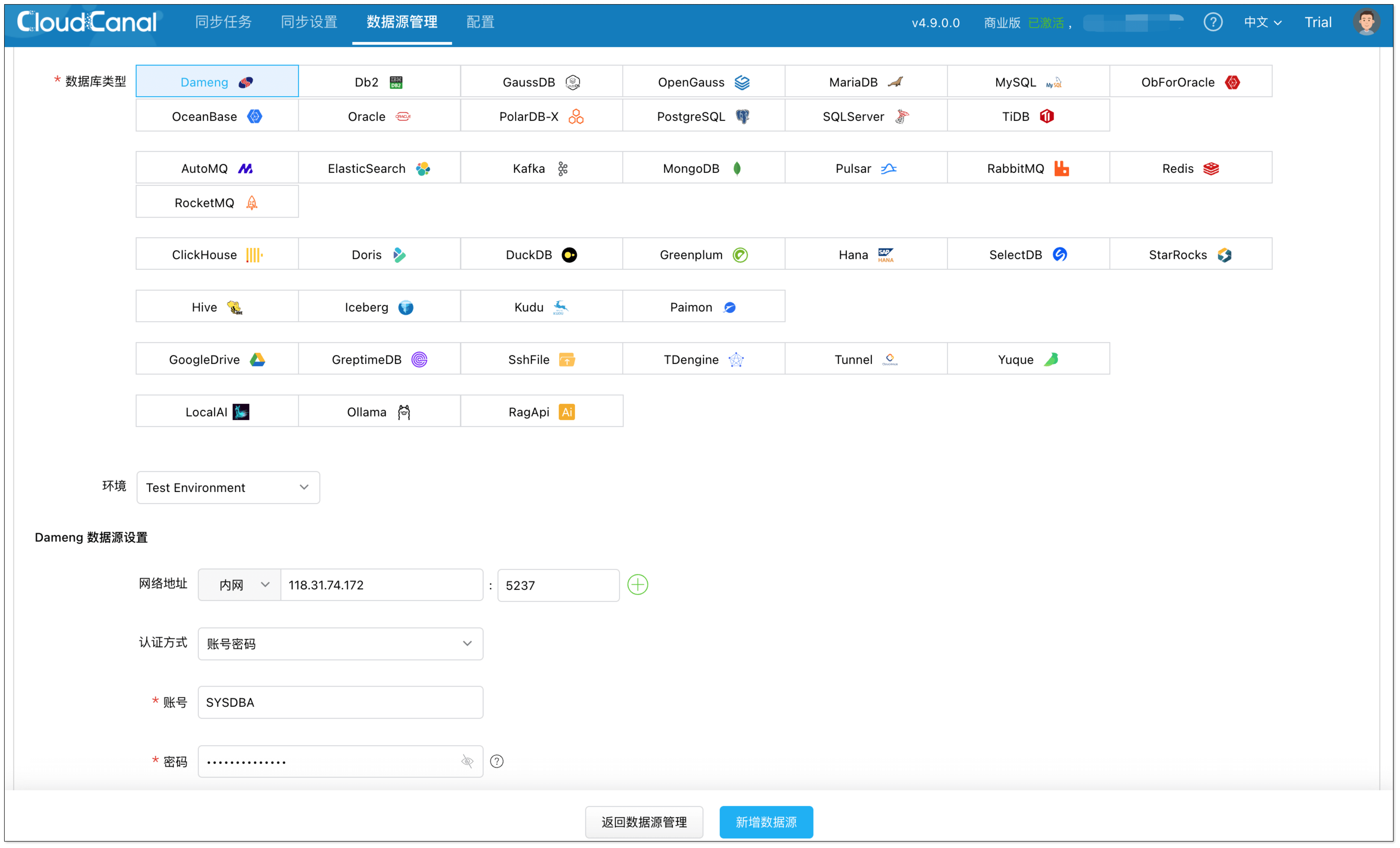 - 达梦作为源端需要具备一定的权限,具体请参考 https://www.clougence.com/cc-doc/dataMigrationAndSync/datasource_func/Dameng/privs_for_dameng