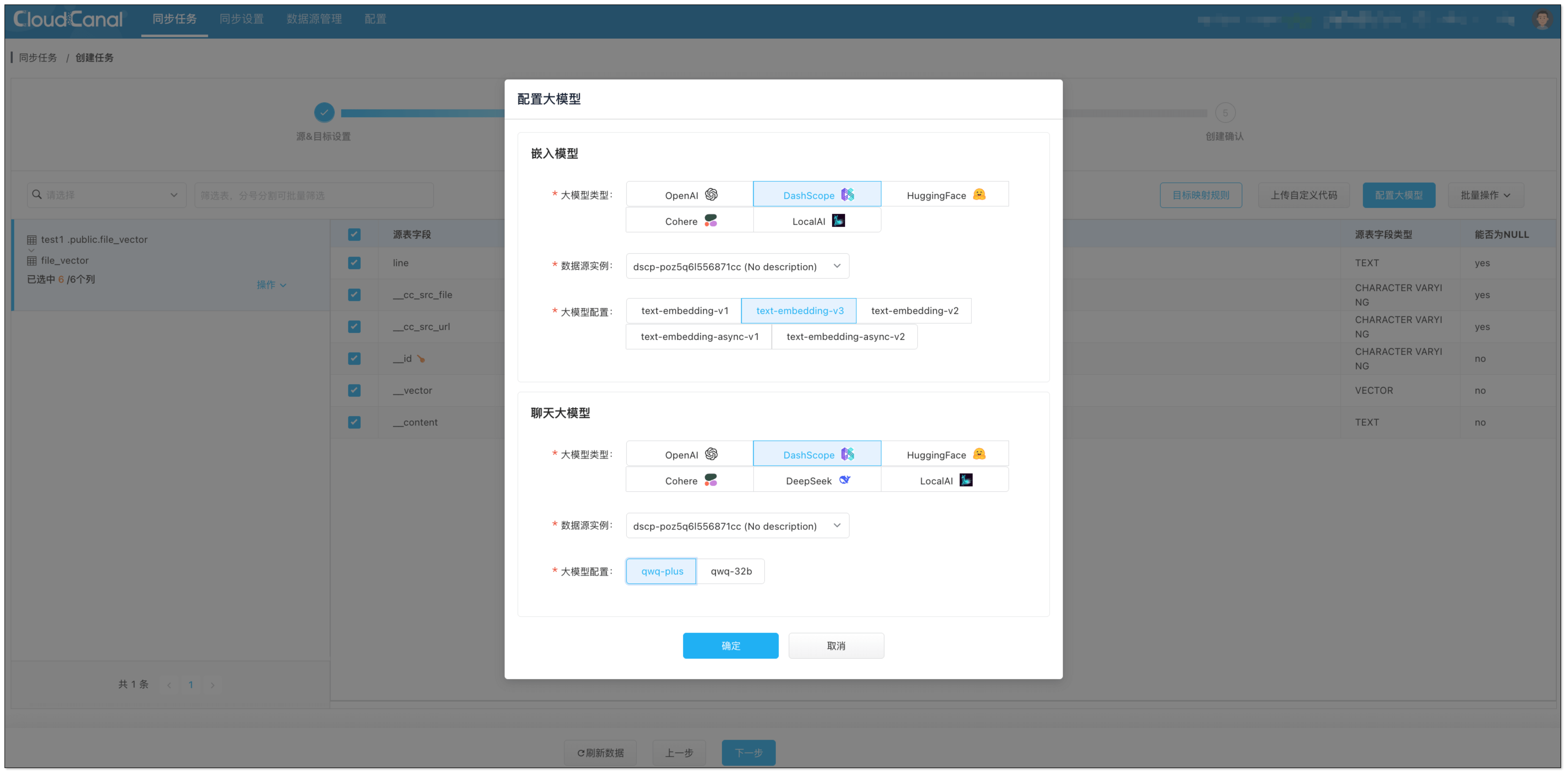 - 源端:已配置的 PostgreSQL(向量表所在库)