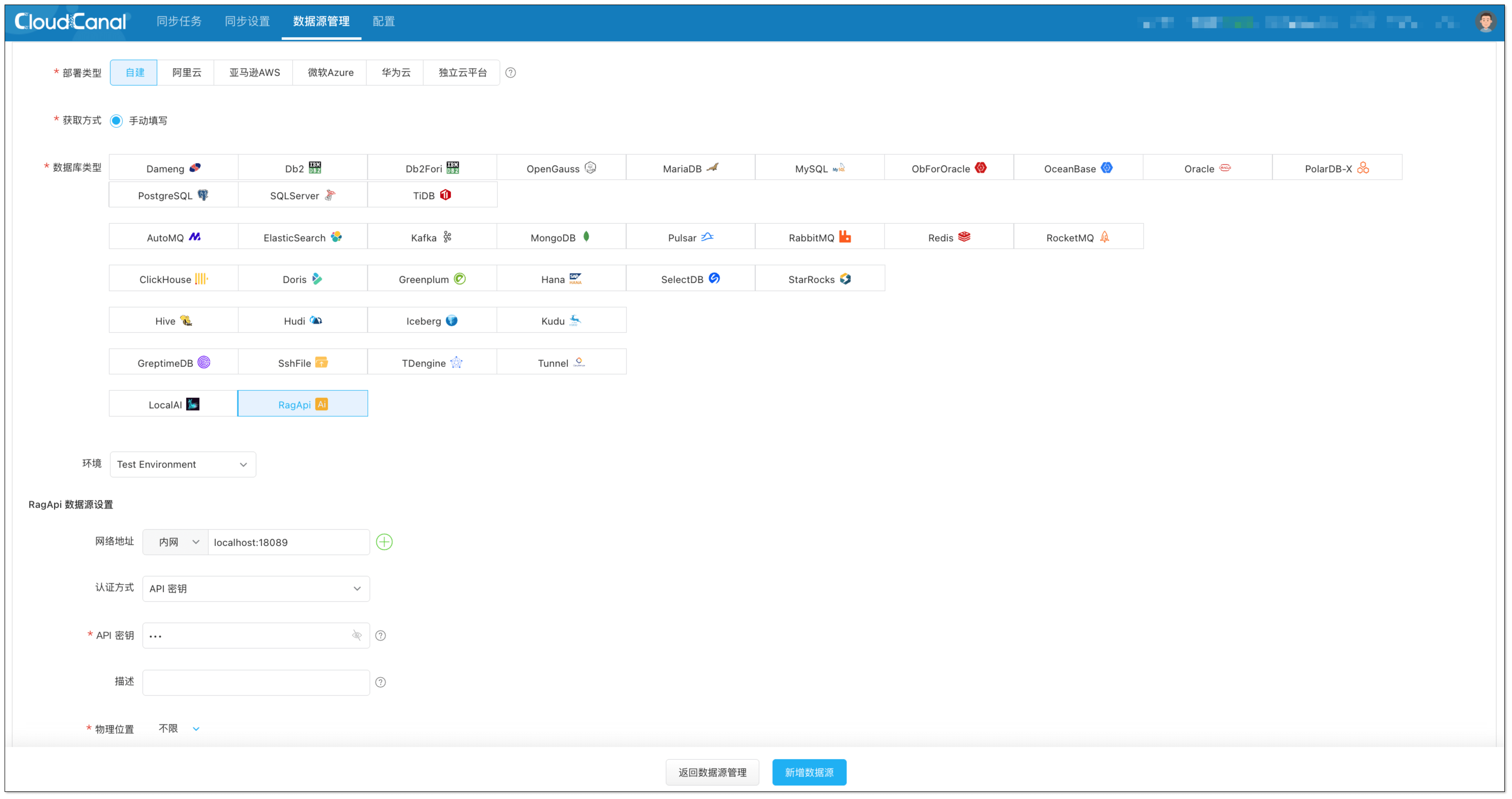 openai,并配置如下参数:- API 密钥:填写在 CloudCanal 中配置的 RagApi API Key